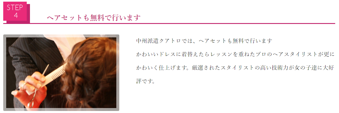 未経験の女の子でも安心の無料ヘアセット・無料メイク・無料ドレス