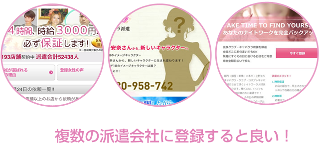 - WEBからお申し込み⇒会社に来社し面接⇒派遣の登録をし、お店を選んで出勤